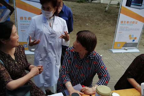 令我们没有想到的是活动当天的情况非常火爆,通过这个可以看出来老百姓他们对身体健康的关注度确实很高。通过今年疫情之后意识到健康的重要性。我们工作人员不管有多忙都依旧戴上口罩为大家做个检测。这就是我们为大家该做的事情。我们九陆生物自主研发的微量元素分析仪、母乳分析仪、特定蛋白分析仪、维生素分析仪这些产品都在现场进行为百姓做个检测。凭借我们九陆生物工作人员的态度和专业赢得了很多老百姓的赞许和好口碑。根据很多百姓的额反馈说检测速度很快,不用等很久就直接出结果了。